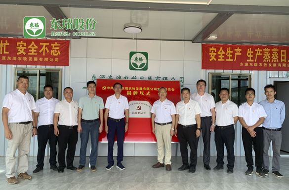為全面加強黨建引領,強化基層黨支部戰斗堡壘作用,8月22日上午,中共東源東瑞農牧發展有限公司支部委員會(簡稱“東源東瑞黨支部”)成立大會暨第一次黨員大會在東源東瑞農牧發展有限公司(簡稱“東源東瑞”)隆重舉行,黨支部8名正式黨員全部參會,會議由東瑞股份總支部書記蔣榮彪主持。